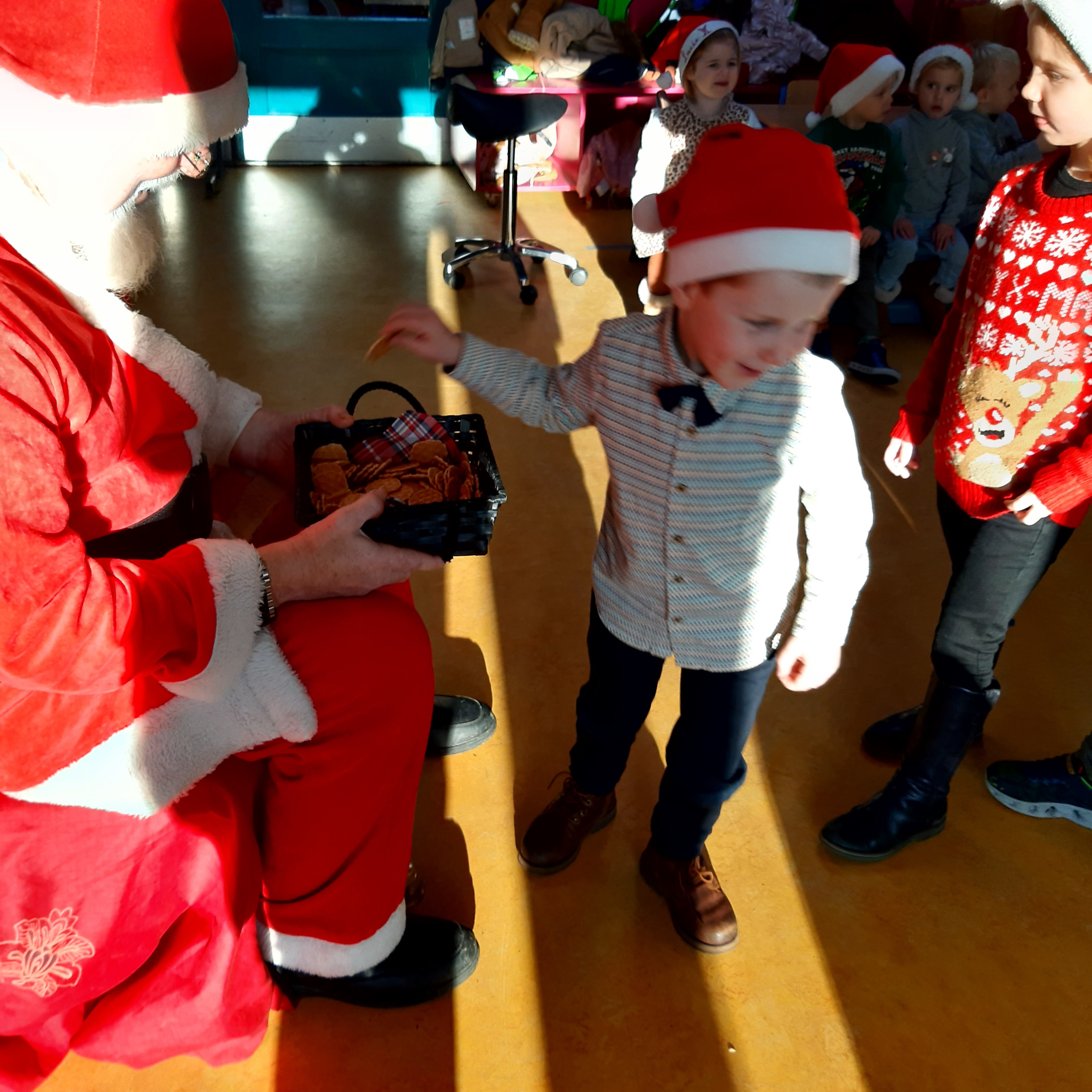 Lekkere, gezonde hapjes, kinderchampagne, pakjes onder de kerstboom en de kerstman op bezoek.