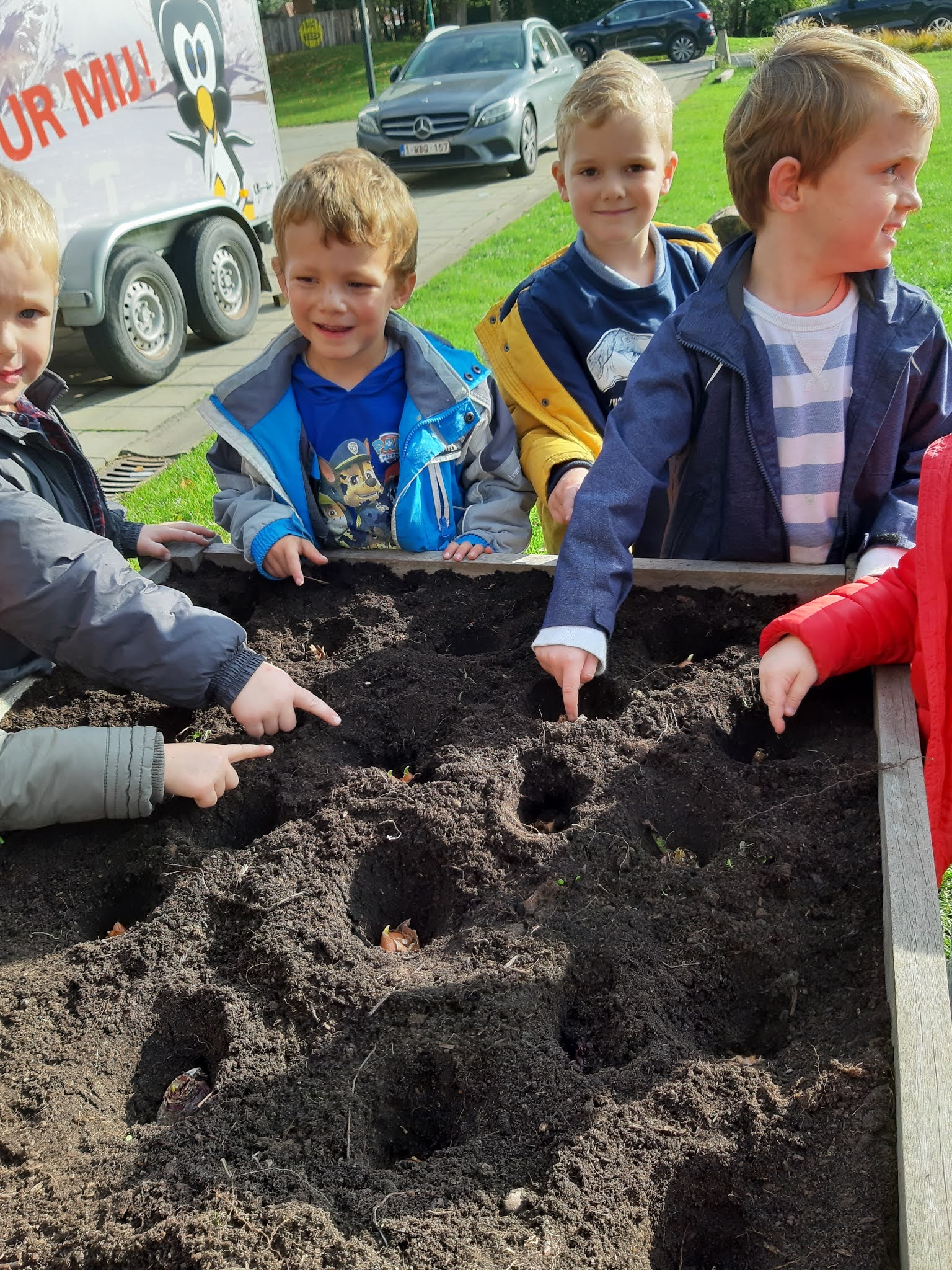 Onder een stralend zonnetje gingen we werken in onze moestuin. Eerst veel onkruid wieden en daarna bloembollen planten. In de lente zal het genieten zijn van onze mooie lentebloeiers.